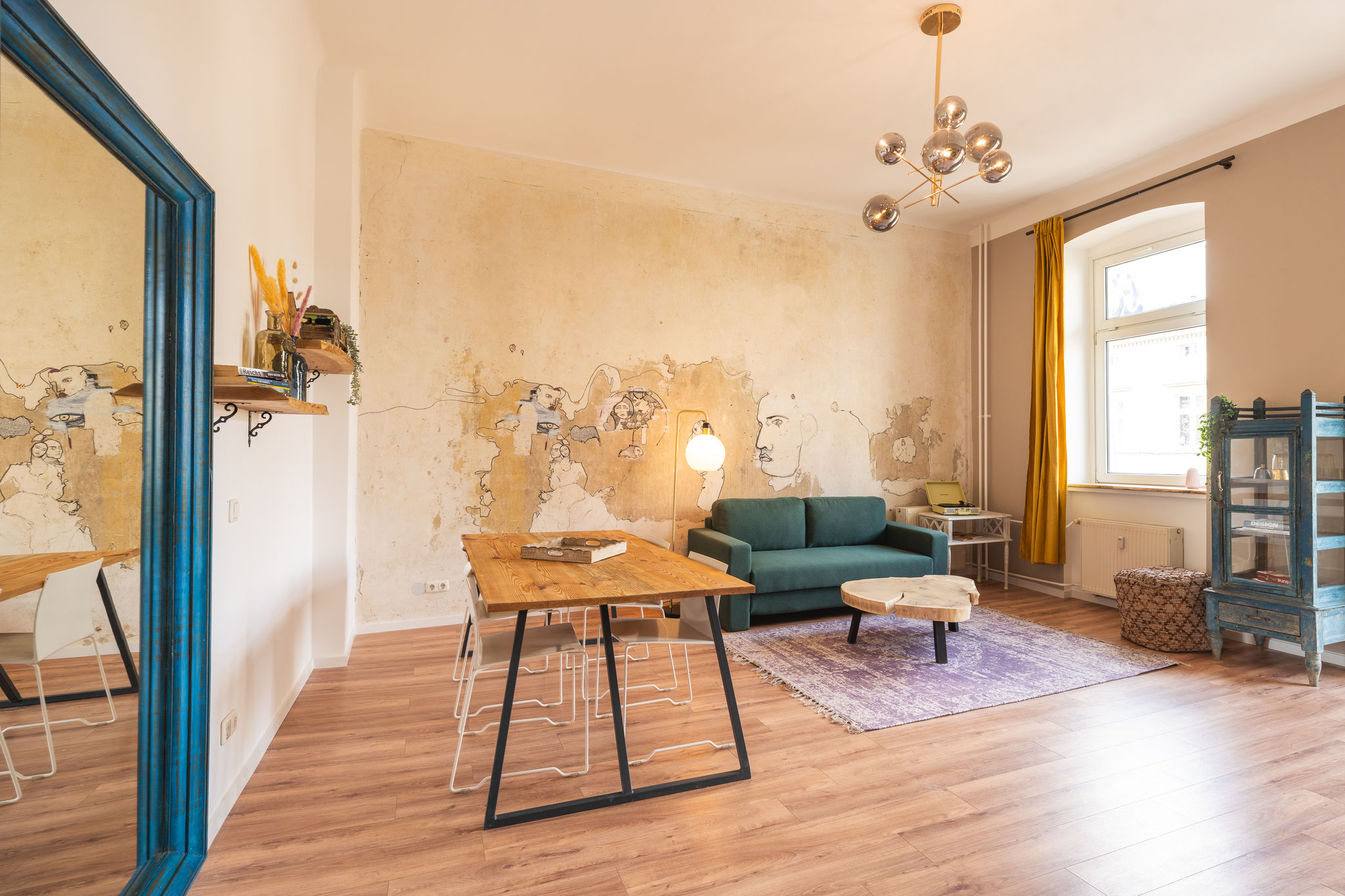 The apartment features a unique atmosphere and a stylish design, combining comfort and elegance to make your stay truly special.