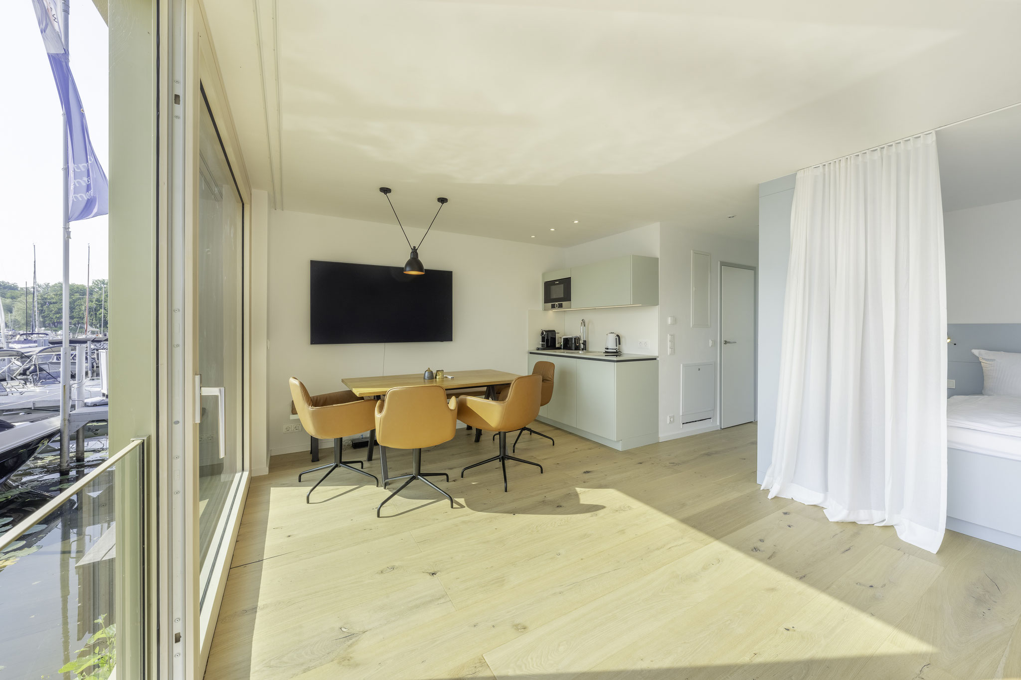 DDie Apartments WannseeLiebe sind ein einzigartiger Rückzugsort – direkt am Ufer des Großen Wannsees, unmittelbar über dem Wasser
